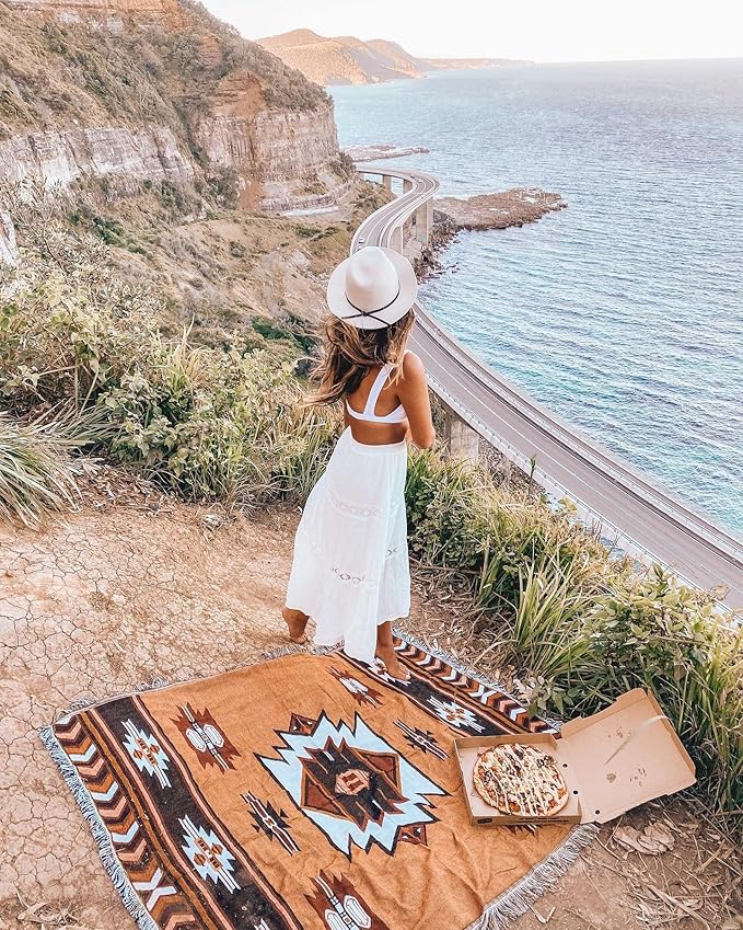 Peel Forest エルパソブランケット マルチカバーメキシカンラグ ネイティブ柄 オルテガ柄 キャンプラグ サドルブランケット 車中泊マット アウトドア バンライフ 130X160cm………