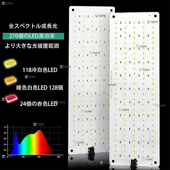 【フルスペクトル成長光】この成長光は、380NM-780NMのスペクトルを持つフルスペクトルデザインを備えています。フルスペクトルグローライトは自然の日光に似ており、植物の発芽、開花、結実、クロロフィル合成、光合成を促進するのに役立ちます。ラン、サラダ、トマト、レモンの木、多肉植物、種子発芽、水族館植物、藻類などのさまざまな植物に適しています。