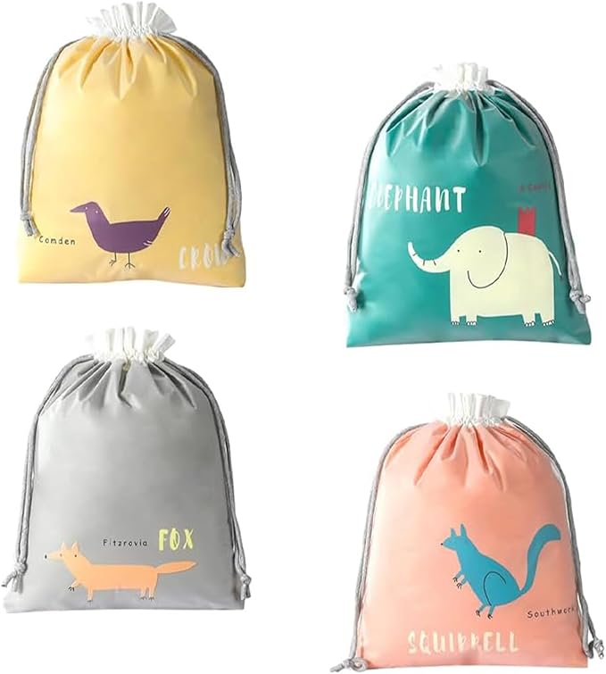 NEW ビニール 巾着袋 4枚セット 収納ポーチ 防水 防塵 収納袋 軽量 旅行用品 温泉バッグ トラベルポーチ 戸外運動 小物入れ 靴袋 濡れた服 水着 収納ポーチ (31*39CM)