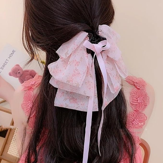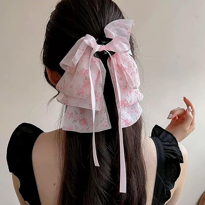 HAPVITAL フリル リボン バンスクリップ 大きめ 髪飾り可愛い ヘアクリップ 大人っぽい ヘアアクセサリー セット ヘアクリップ 髪留め ヘアアクセサリー クリップ バナナクリップ レディース用 おしゃれ 韓国風 オフィス 贈り物 (ピンクのドット柄)