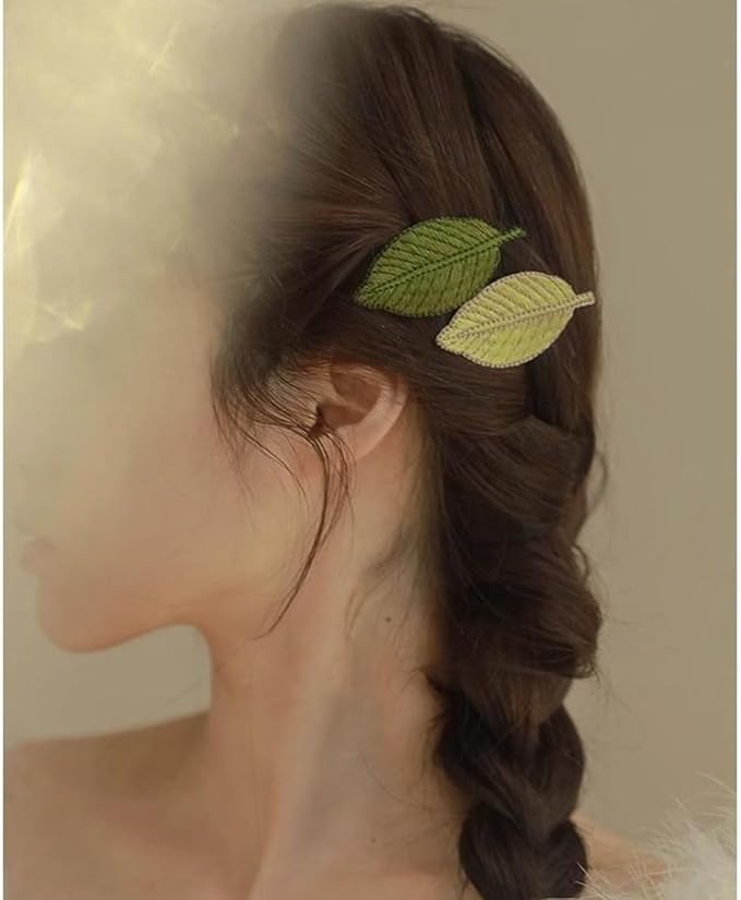 EZ PEACH クラシカル 葉 ヘアクリップ 刺繍 葉の形 ヘアピン 女の子 葉 ヘアバレッタ 前髪クリップ 女の子のヘアピン 蝶ヘアピン 可愛い かわいい 前髪 髪留め 髪飾り 女性 レディース パーティ 4点セット (緑+若葉色)