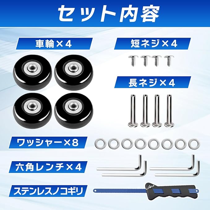 InZaccaZ スーツケース キャリーバッグキャスター 交換 修理 タイヤ交換 タイヤ 車輪 交換 キット 40mm 50mm 54mm 45mm 4個セット ノコギリ付き (40mm)