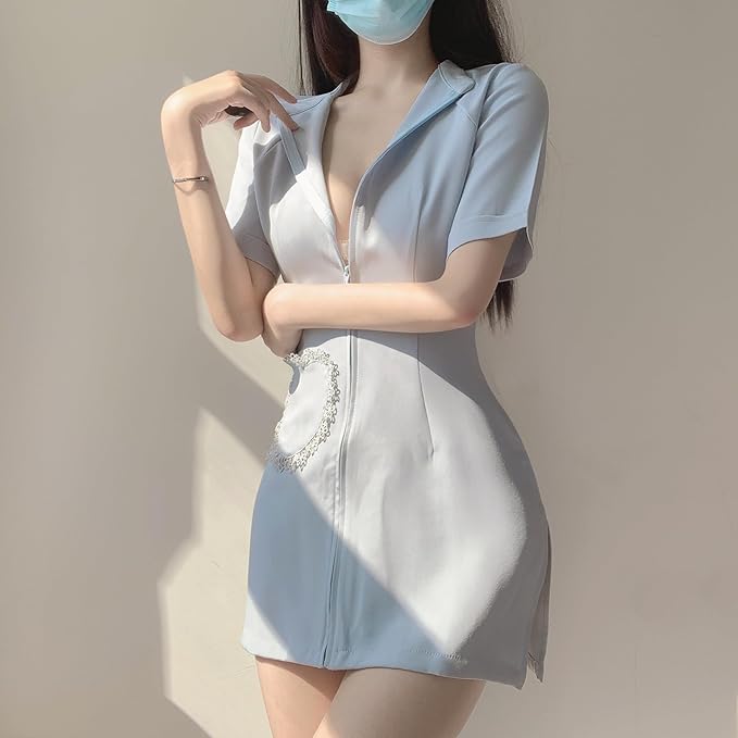 [InZaccaZ] ナース服 ナース セクシー コスプレ エロ 過激 エッチ な えろい 白衣の天使 メイド 可愛い かわいい 誘惑 萌え ボンテージ レディース 情趣下着 ランジェリー ワンピース コスチューム ミニ丈 ハロウィン 仮装 衣装 撮影会 キャップ セット (ホワイト)