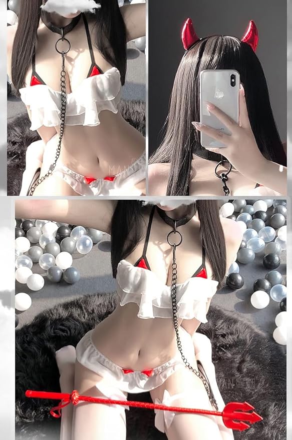 [InZaccaZ] コスプレ サキュバス 小悪魔 デビル セクシー コスチューム 下着 ランジェリー 女性用 仮装 ハロウィン イベント フリーサイズ 黒 白