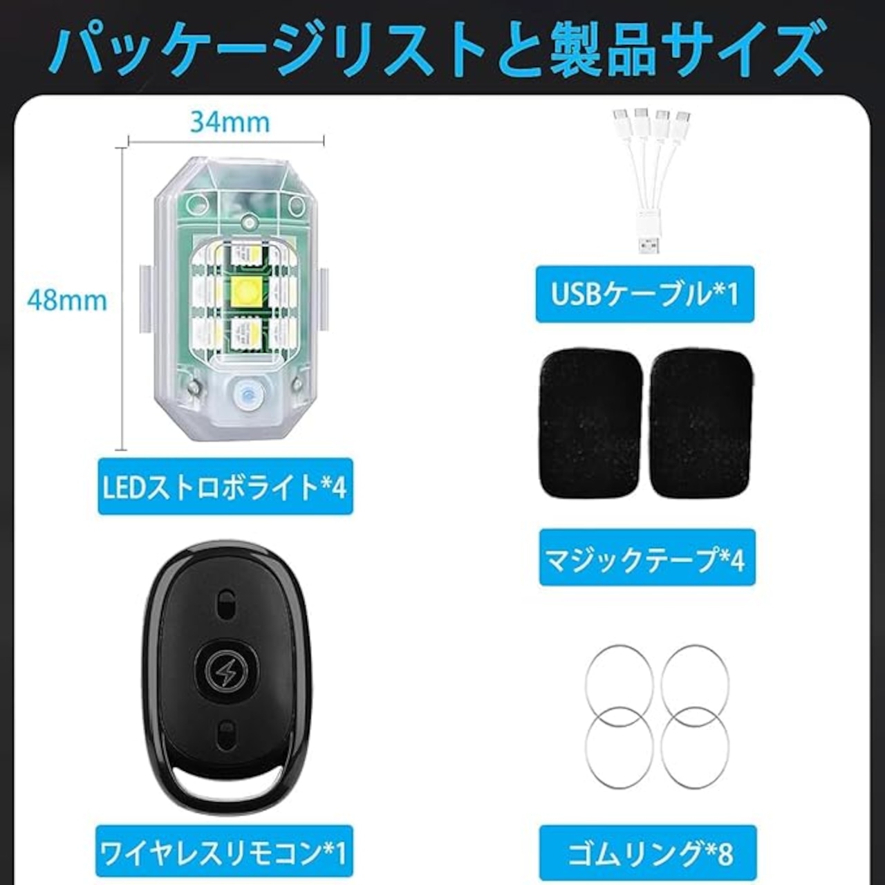 GOOMAND ワイヤレス LEDストロボライト(リモコン付き) 非常信号灯 飛行機ライト 7色切り替え フラッシュライト USB充電式 LED衝突防止ライト 点滅 警告灯 多用途 高輝度 防水 防塵 ドローン・バイク・自転車・車対応 4個セット