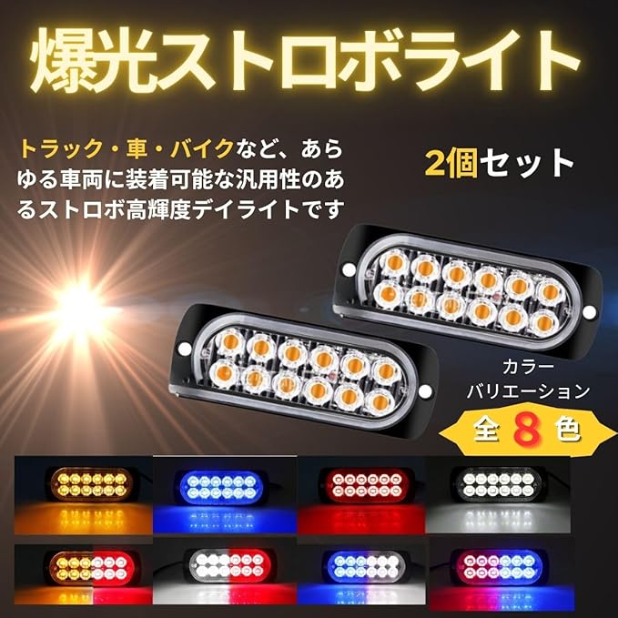 DaishiDai 爆光 ストロボライト ストロボフラッシュ LED 12V 24V 自動車 トラック バイク 汎用 非常灯 警告灯 点滅 IP67 防水 (ホワイト)