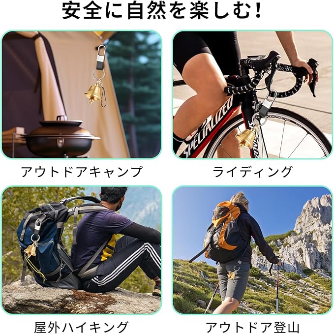 【人気の熊よけ 鈴】真鍮鋳物の熊ベルなので高音帯の音色が遠くまで響きます。 渓流の音にかき消されにくく、より遠くまで響く効果があります。 より遠くの熊に存在を知らせることが可能になります、熊よけに効果的で、事故防止にもなる。