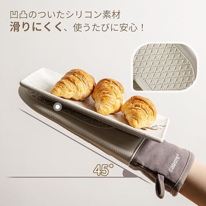 CAROTE カローテ 耐熱ミトン オーブンミトン 鍋つかみ 耐熱グローブ オーブングローブ300℃耐熱 やけど防止 滑り止め シリコン製 汚れが目立たず 耐久性 コンベクション 電子レンジ オーブンレンジ ケーキを焼く 鍋料理 ホームベーカリー オーブン料理 グリル グリラー バーベキュー グレージュ( 2枚セット)