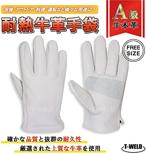 [東安] TOAN 溶接 耐熱 BBQ レジャー 建築 鋳物 鉄鋼 A級 牛本革 5本指手袋 ( 白色 ) 1双 BBQ アウトドア 保護具 グローブ 内縫い インボイス対応領収書付き 売れ筋人気商品