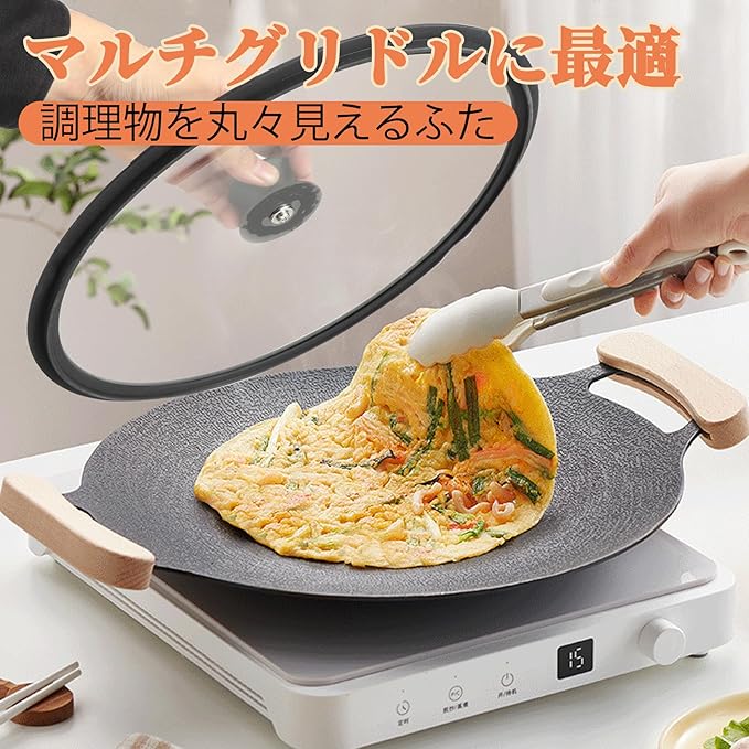 【AITECNO】マルチグリドルパン用 蓋 直径29cmグリドル対応 ガラス シリコーン製 透明 (蓋-29cm)