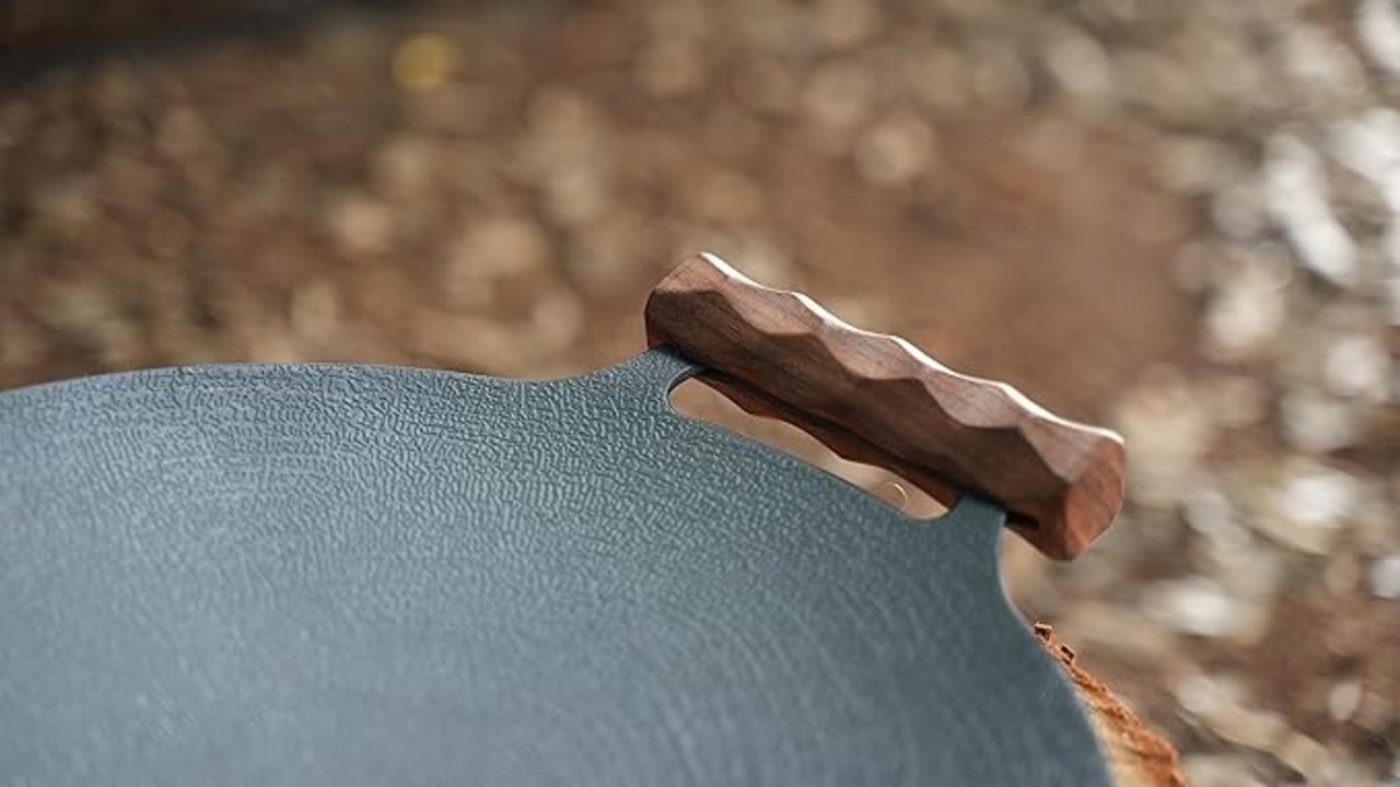GRANDOORマルチグリドルパン専用グリップ ※他社製品との互換性は確認できておりません。取りつかない可能性がありますのでご注意下さい。 こだわりの名栗加工を施した一品。丁寧に無垢材を削って仕上げています。加工後にオイルステイン処理を施し質感と耐食性を高めています。ウォールナット素材を使い高級感があります。マルチグリドルパンに最適な仕様になっています。キャンプやアウトドアで使うと雰囲気がとてもアップします。そのままお皿としても使えるマルチグリドルパンです。