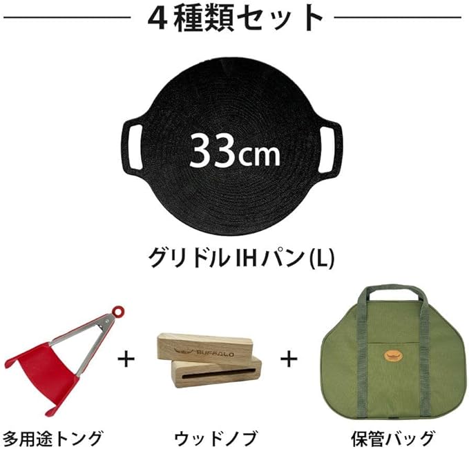 バッファロー マルチグリドル IHパン アウトドアの老舗バッファローが作ると グリドルも違います! ―「シーズニング不要の超軽量グリルドル」 アウトドアの老舗バッファローが作るとグリドルも違います! 調理からプレーティングまでどこでも簡単に!キャンプ場でも家庭でも全ての熱源が使用可能です。 ※熱効率の良いIH調理器、ガスレンジ、ハロゲンなど様々な調理器で使用可能 ●強力なコーティング コーティング力に優れたノンスティックコーティングで 強力な耐久性を持っています。 ●油不要、焦げ付きにくい! 「年輪」のような模様の オイルロードで食べ物が 焦げ付かず、洗浄が楽です。 ●傷・摩擦に強い! 傷、摩擦、スクラッチに強く コーティング維持期間が長いです。 ●料理が美味しくなる 4T最適の厚さで耐久性を強化 。熱伝導が早い! ●安心してお使いいただけます。 PFOA・PFOS等、不検出テスト済み ●多様な熱源に対応! 対応熱源:ガス、IH調理機、直火、炭火、 ラジエントヒーター、セラミックヒーター、ハロゲンヒーター