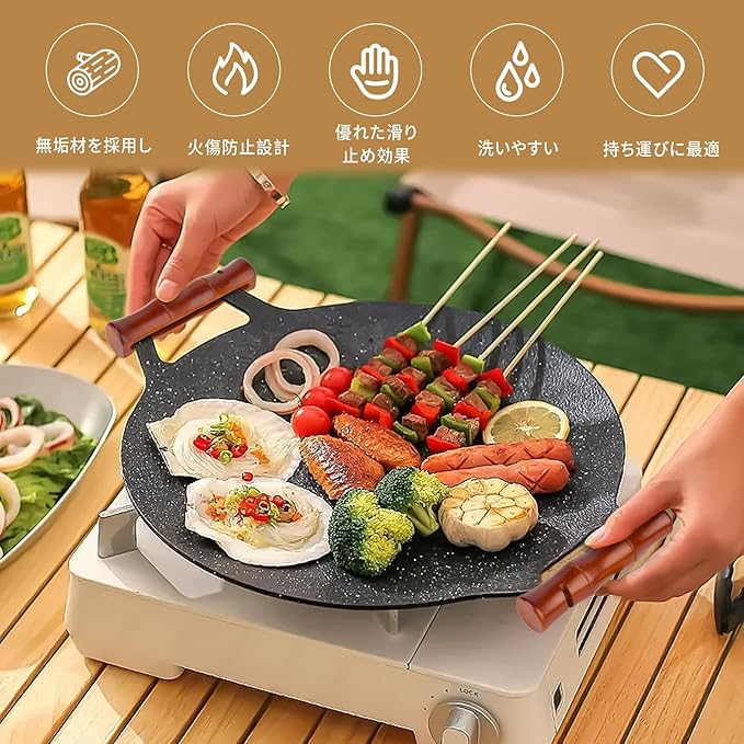 【高品質】マルチグリドル取っ手は厳選された天然の環境保護木材で作られ、頑丈で耐摩耗性、耐久性があります。そして、磨き上げ、色褪せにくく、手触りが非常によいです。表面に硬い膜ができるため、汚れやシミ、水気に強く、傷も付きにくくなります。