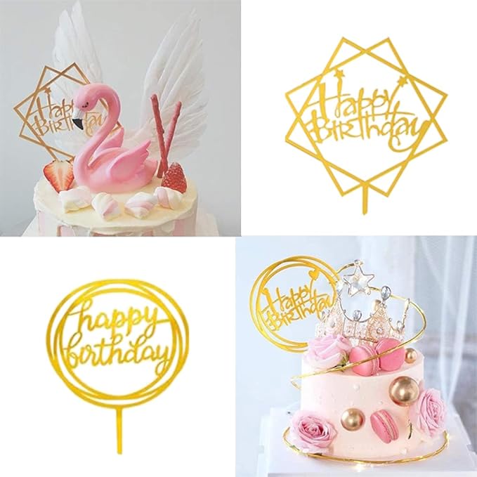 YAARUJEE ケーキトッパー 誕生日ケーキ 飾り 9種類セット ケーキピック ハッピーバースデー 飾り アクリル製 ゴールド おしゃれ デコレーション ケーキ挿入カード パーティー装飾