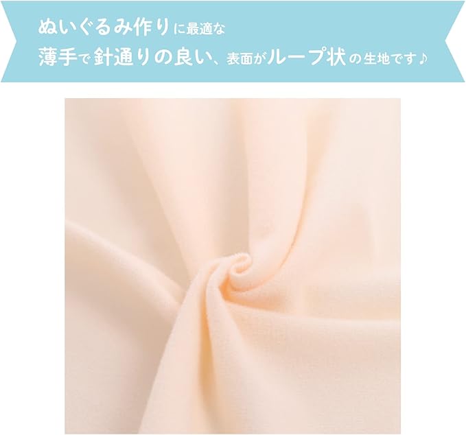 ぬいぐるみ作りに最適な薄手で針通りの良い、表面がループ状のやわらかなニット生地です