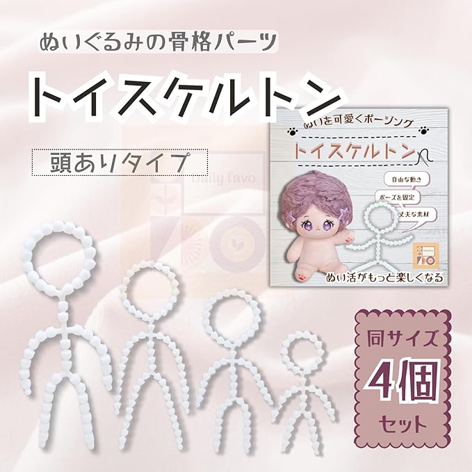 Daily favo トイスケルトン 4個セット ぬいぐるみ 骨 骨組み 骨格パーツ 可動式 人形 手作り カスタム ぬい活 推しぬい (頭あり20㎝)
