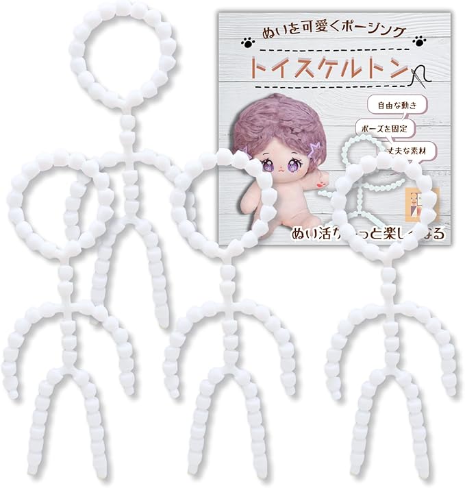 ❤ぬいぐるみ・お人形・マスコットの可動式 骨格パーツ、トイスケルトンです。内部に入れ込むことで骨組みの役割を果たし、自由にポーズを取らせることが可能なので、オリジナルの可動ぬいぐるみを作ったり、推しぬいをカスタマイズして楽しむことができます。