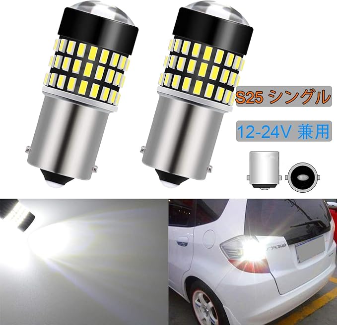 【極性フリー&取付簡単】純正球(S25)とほぼ同じサイズなので、極性フリーで、取付は簡単!原箇所のまま差し込むだけで取付ます。適用ソケット:ターンシグナル、逆光、ブレーキライト。適用ソケット:S25 P21W 1156 BA15S G18。