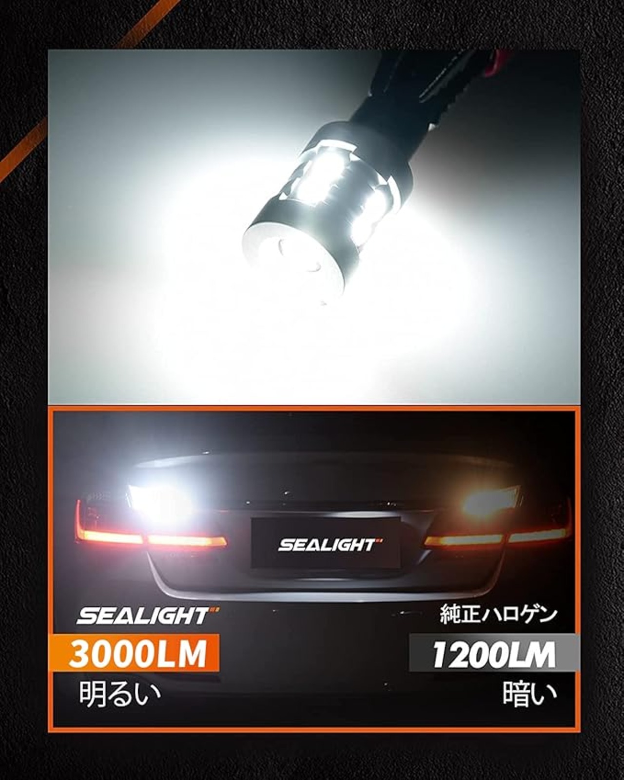 SEALIGHT t16 led バックランプ 後退灯 爆光 3000lm 25W 高輝度 最新3030SMD チップ バックライト 車検対応 キャンセラ ー内蔵 12V 無極性 耐熱性 50000時間以上寿命 T16/T15 6500K ホワイト 2個入り 2年メーカ保証 (J1-T16)