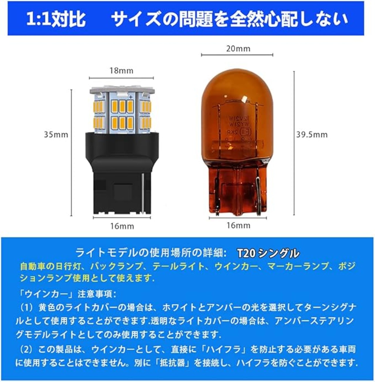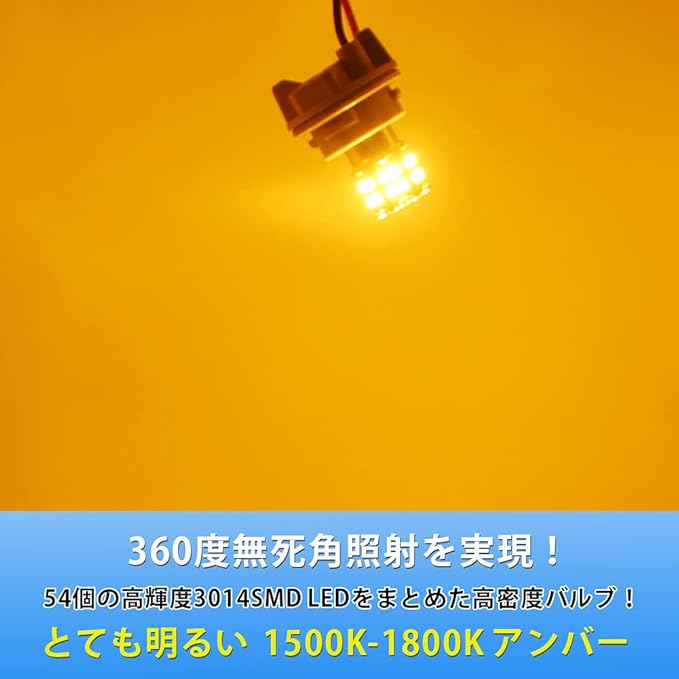 【形状】T20シングル 極性なし、12V-24V専用,1080LM/2個 54LED 3014SMD アンバー 。