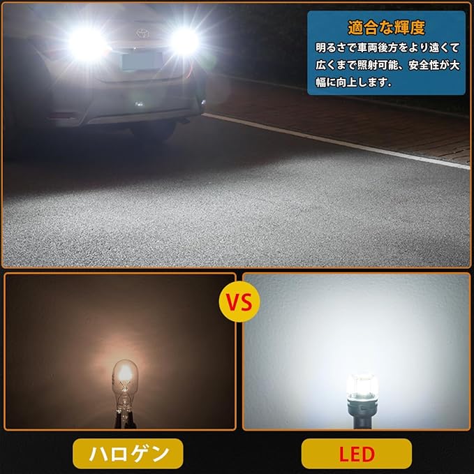 【高輝度&無極性設計】 T16 LEDバックランプ ホワイト. 高拡散15LED 2835SMD、すみずみまで均一な光を照射。360 全方位照射できます。 T16 LED バックランプ 全面的に導電でき、明るさ1500LM、純正バルブに比べて300% 明るさUPします!極の明るさが実現します。極性フリーで、取付は簡単!原箇所のまま差し込むだけで取付ます。