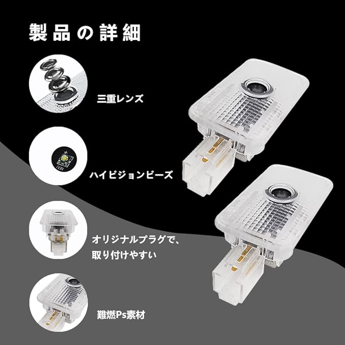 【用 途】 自動車のドアを開ければ点灯し、逆にドアを閉めれば、消灯する。新しい効果は地面を照らし、後部車が安全に注意を払うことを思い出させる そして、車両の全体的なスタイルを向上させます 。