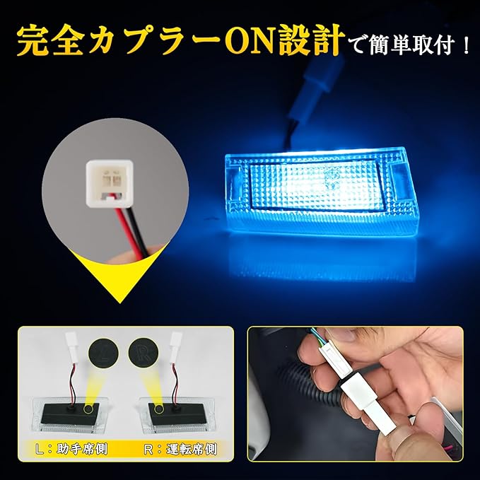 【カプラーONで簡単取付|初心者でも安心】取り付けは純正カーテシランプと差し替えるだけのカプラーON設計 配線加工や専用工具は一切不要で、DIY初心者でも数分で取り付け完了。