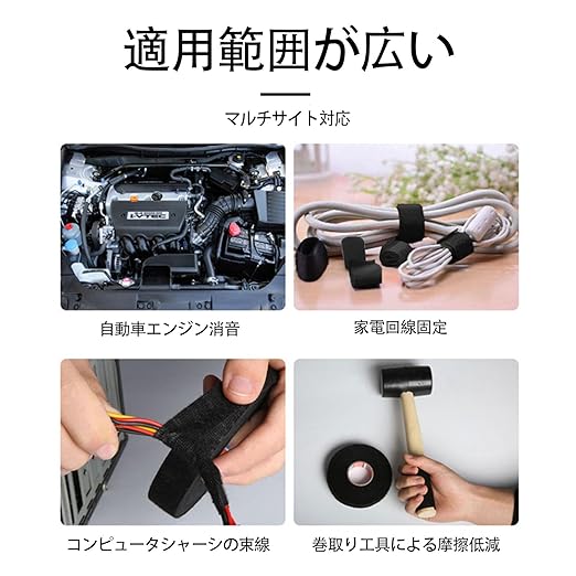LUYING ハーネス結束&保護テープ 約19mm 15m 厚さ約0.3mm 絶縁 耐高温 ざつおんぼうし 難燃性テープ
