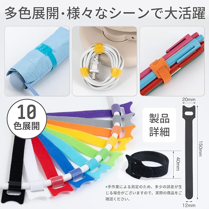 【自由に調整・繰り返し使用可能】コード まとめる ケーブルバンド 結束バンド マジックテープ バンド ケーブルタイ ケーブル バンド ケーブル結束バンド 配線まとめ 結束テープ マジックテープ (虹色)