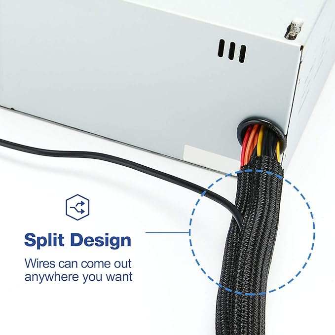 JOTO ケーブル収納スリーブ 長さ約8M 直径1.3cm DIY切断可能 PET素材、家庭用/オフィス用 -ブラック
