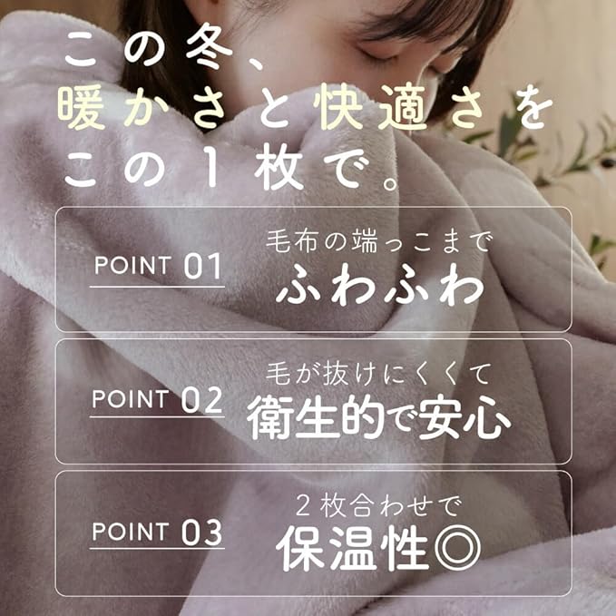 【ヘムレス仕様:2枚合わせ毛布】軽やかさと暖かさを両立した、ふわふわヘムレス仕様の高機能毛布。縁までやわらかく、敏感肌にも優しい使用感。高密度設計と洗える仕様で、長く快適にお使いいただけます。