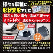 ●粘着剤不使用、強力マグネットラバーで貼り付けるため、ワックスがけやボディーコーティング時に、簡単に取り外して、何度でも取り付けたり外したりすることが可能です。