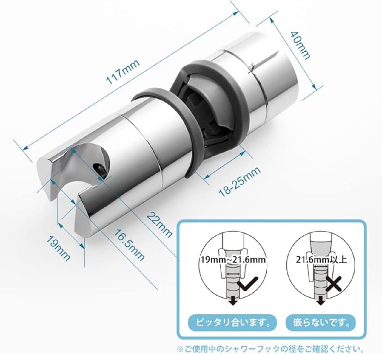 OFFO シャワーフック 18mm~25mmスライドバー対応 シャワーヘッドホルダー修理交換用 シャワーヘッド高さ・角度自在調整 後付け可能 工具不要取付簡単