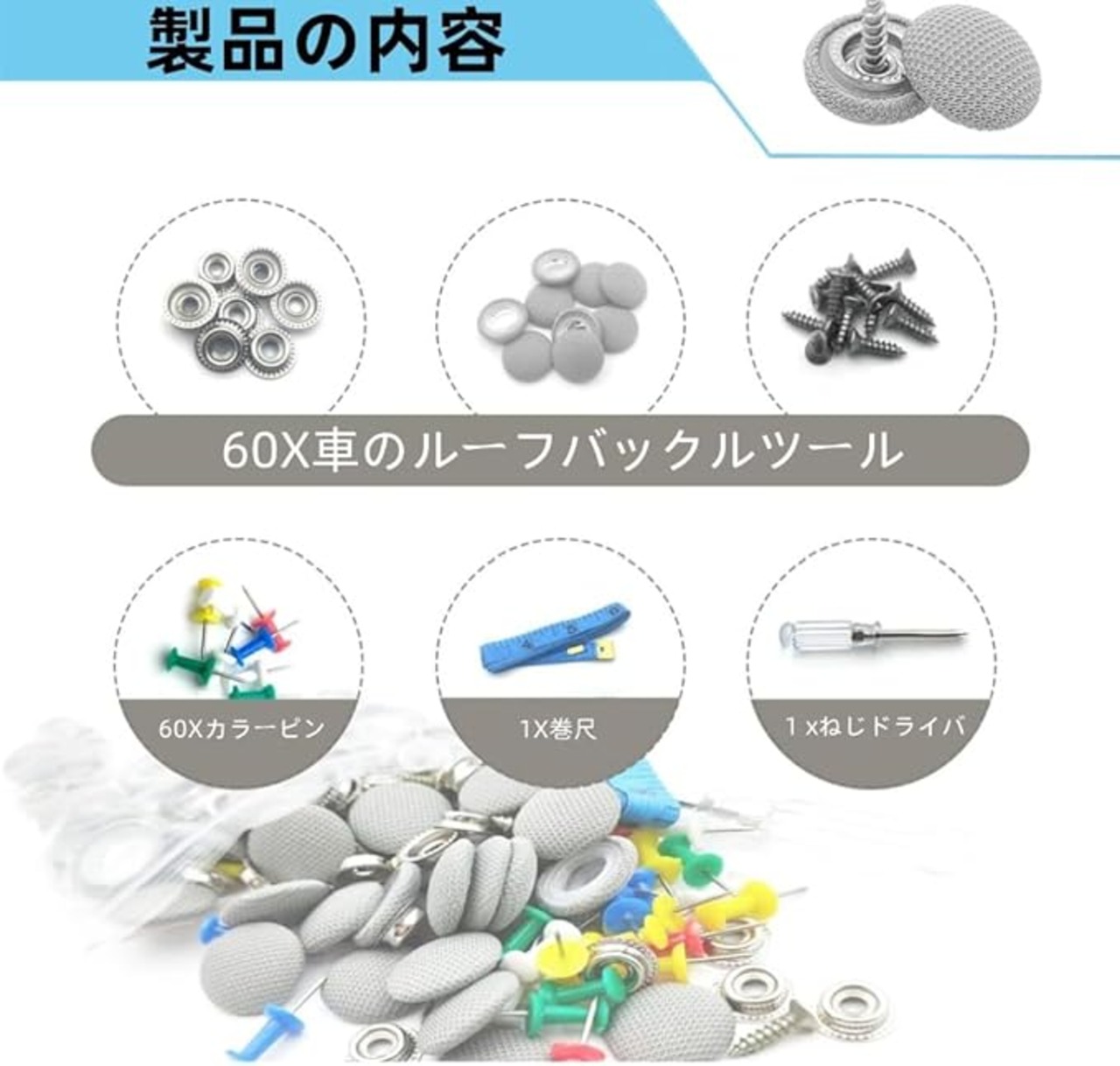 車天井垂れ修理 リベット 60個 修理ボタン ルーフリベット こていそうち 自動車屋根補修リベット 自動車室内天井布固定修理に適している 取り付けツール付き