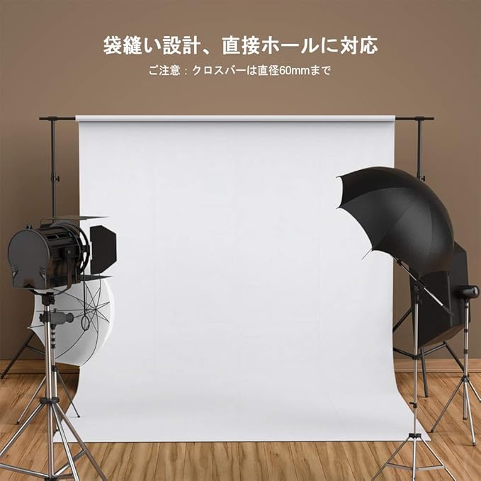 「改良版・100%ポリエステル製」改良後の白背景布は少々硬いポリエステル材質を採用して、綿製と改良前のポリエステル材質よりシワが目立たなく、低温アイロンでシワを易く取れます。垂れ感が良くて、優れるスタジオ効果をご提供できる背景布です。