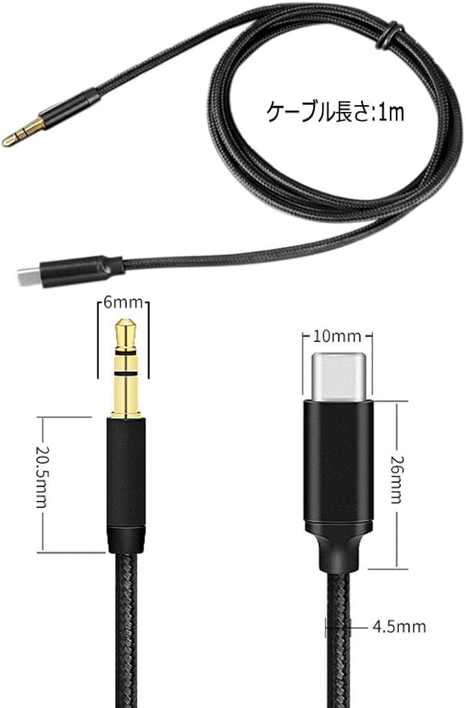USB タイプC オス -3.5mmステレオミニプラグ オス。スマホ、カーステレオ、スピーカー、ヘッドホン、タブレットなどに対応します。