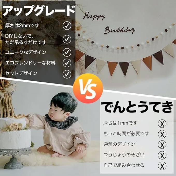 誕生日を迎えた赤ちゃんの写真をおしゃれに撮影 - 誰でも簡単に飾り付けできるオールインワンセット、組み合わせに迷うことはもうありません❗ インスタ映え間違えなしの写真が撮れます。壁に貼り付けて、お食い初めのお祝いの飾りに、そして温かみのある雰囲気です。