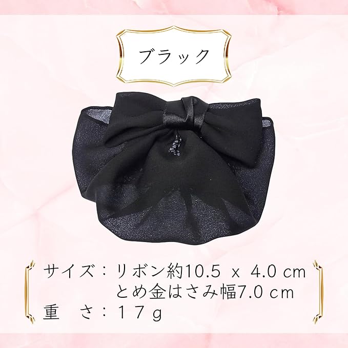 [美人髪KOEIDO] リボン バレッタ(ネットつき)お団子ネット シニヨン シュシュ 簡単 (ブラック) (ブラック(マットな質感/小さめリボン))
