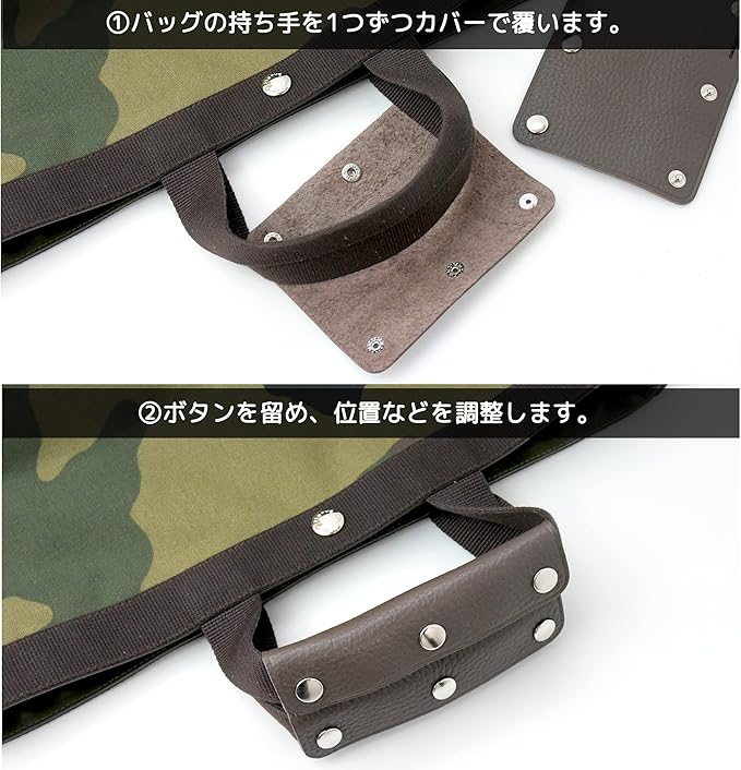 大切なバッグをオシャレに「守る」本革ハンドルカバー Mサイズ 修復不可能な持ち手でも、本革ハンドルカバーをつけるだけで、 キレイによみがえります。
