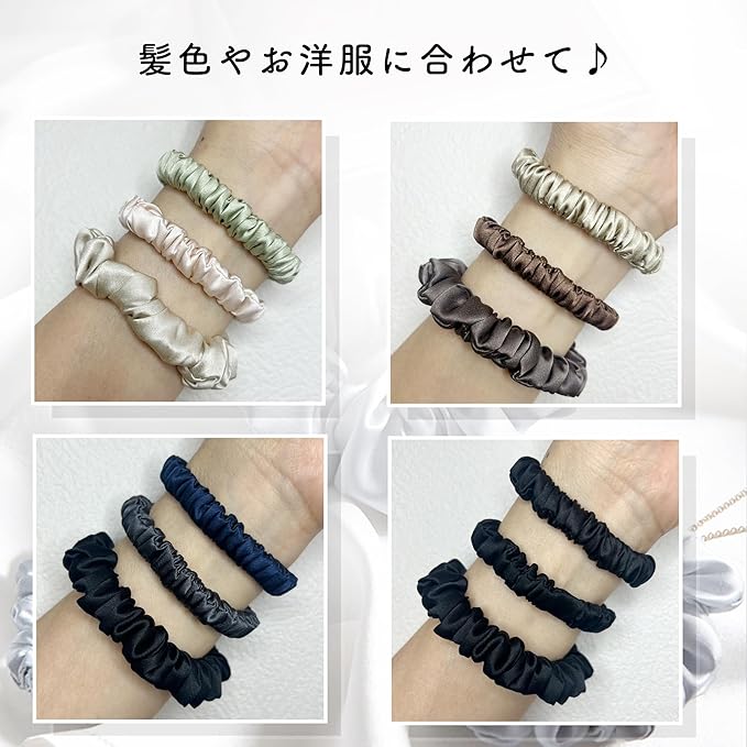 ★【髪に優しいシルク シュシュ】★天然高級シルク100%使用した幅1.5㎝、1.0㎝アソートセットのヘアゴムサイズ 【シュシュ】です。髪にからまりにくい質感で、乾燥と圧迫から守り、毎日髪への負担を最小限におさえます。大人カラーのアソートでヘアゴムとは一味違った華やかな印象のヘアスタイルを演出できます!