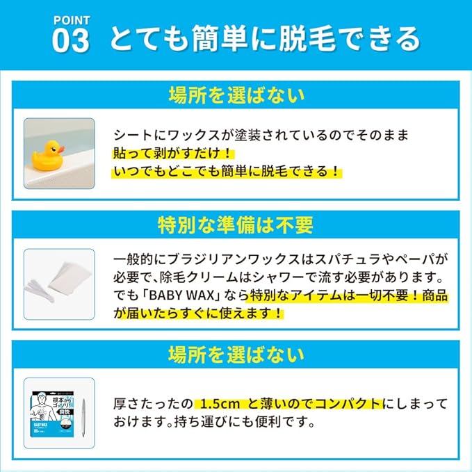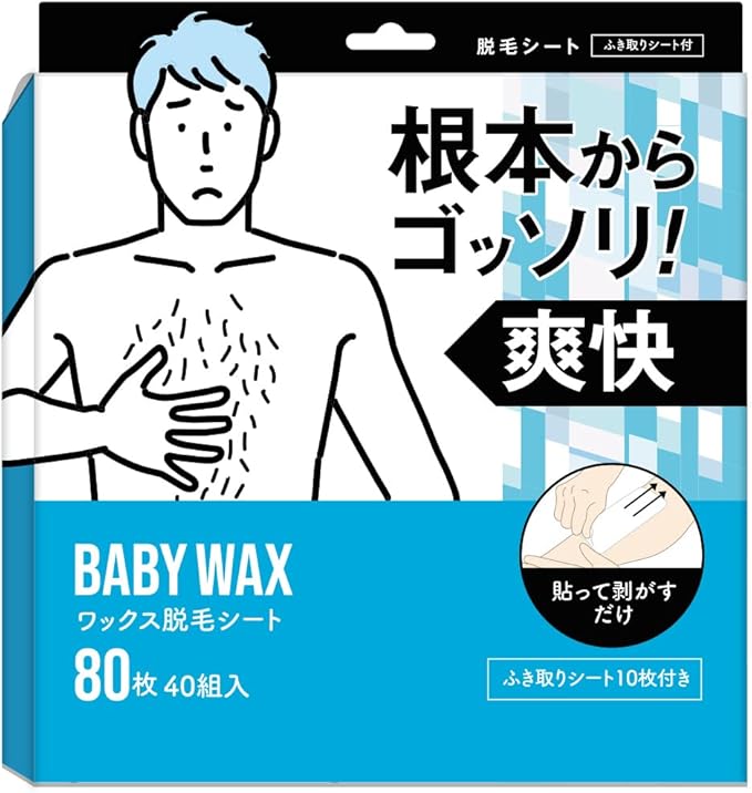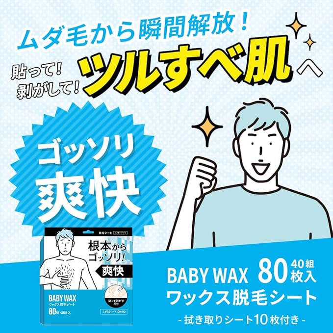 ⭐【ムダ毛から瞬間解放】貼って、剥がして、ツルスベ肌へ。BABY WAX ワックス脱毛シート。 80枚入り40組。拭き取りシート10枚付き
