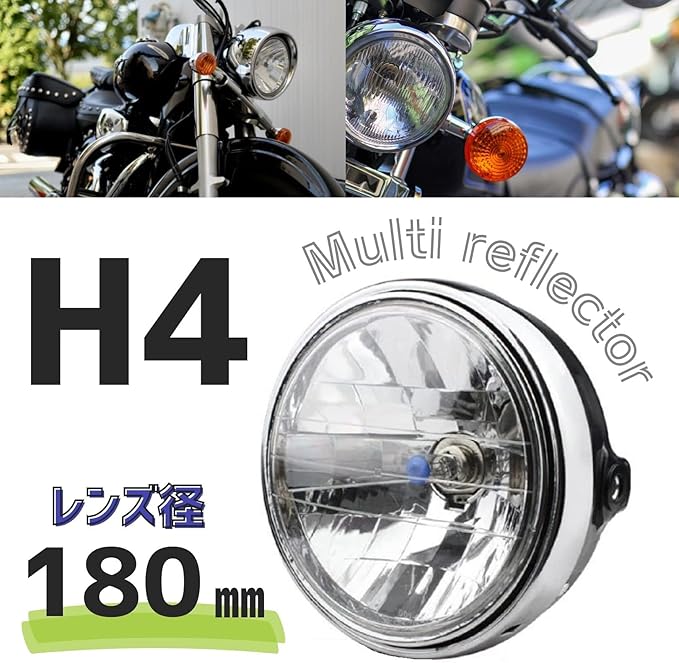 バイク 汎用 ヘッドライト リフレクター ダイヤモンドカット レンズ ハロゲン ランプ Ф180 バリオス ZRX ZR400 CB400SF VTR250 ゼファー 400 750 1100 旧車 (1個)