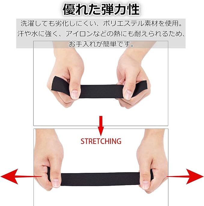 【裁縫・手芸材料に】オリジナルの洋服やゴムベルト制作、弁当箱のベルト、上履きの替えゴム、手作りカバンなど、ハンドメイド作品にもおすすめです。