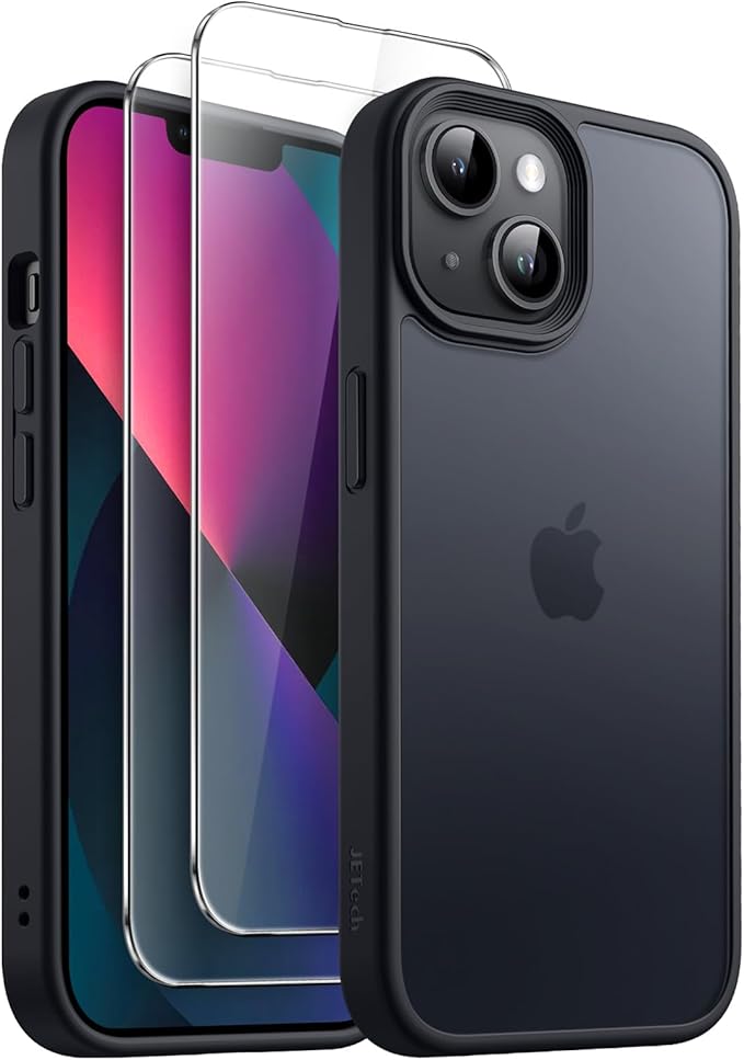 JETech 3 in 1 iPhone 13 mini 5.4 インチ用 マットケース 2枚強化ガラスフィルム付き 半透明 つや消し 耐衝撃スマホカバー (ブラック)