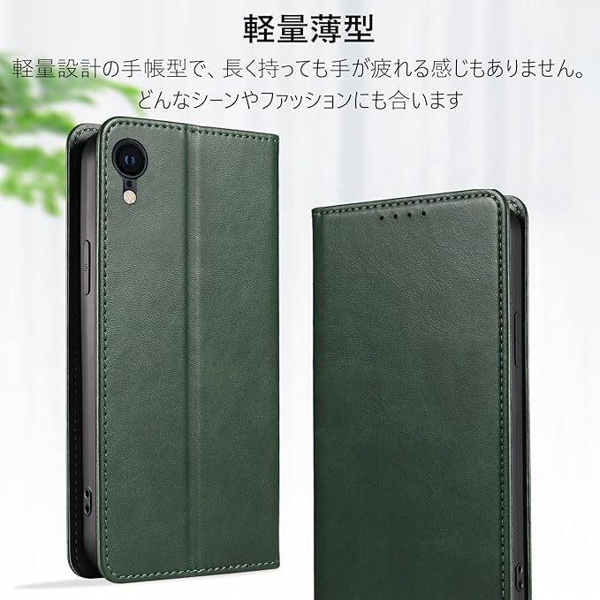 【KWATUNG】iphone xr ケース 手帳型 レザー スマホケース iphone xr 手帳型 軽量 放熱性 iphone xr 手帳型ケース 薄型 マグネット式 アイフォンxrケース 手帳型 カード収納 スタンド機能 iphone xrケース 手帳型 衝撃吸収 落ち着いた色 iphonexrスマホケース手帳型【グリーン】