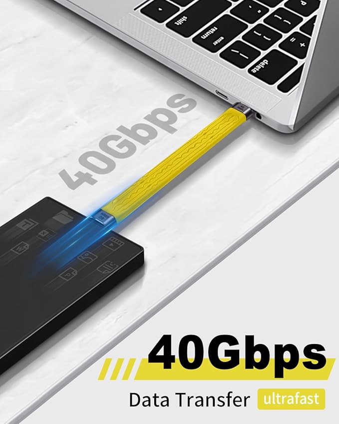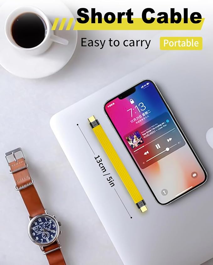 USB Type C 充電ケーブル短いは40Gbpsのデータ同期転送をサポートし、お気に入りの映画、音楽そしてを数秒で転送できます。Type Cハードドライブ、ポータブルSSD、macbook、アンドロイドオートPCラップトップ、タブレット、テレビ、モニター、スマートフォンなど、ほとんどのUSB Cデバイスに対応しています。