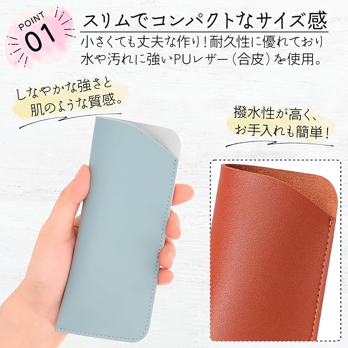 【耐久性の高い素材採用】メガネケースは、水や汚れに強いPUレザー素材を採用しています。耐久性のある高品質の素材が、メガネをしっかりと保護。機能性とデザイン性を兼ね備えた一品です。毎日の使い込みでも品質を保ち、長くご利用いただけます。
