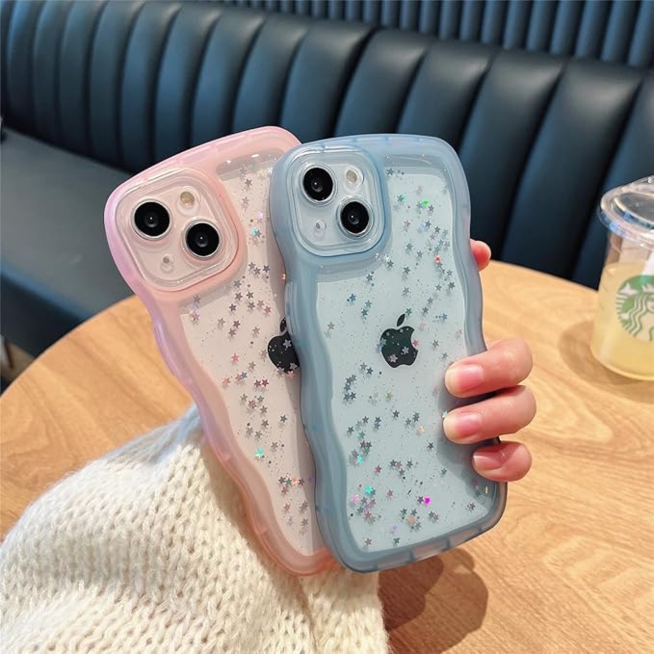 きらきら iPhone15 ケース クリア 透明 ラメ入り 星 キラキラ ウエーブ 波型フレーム かわいい アイフォン15 カバー 大人 可愛い デコレーション 女性 人気