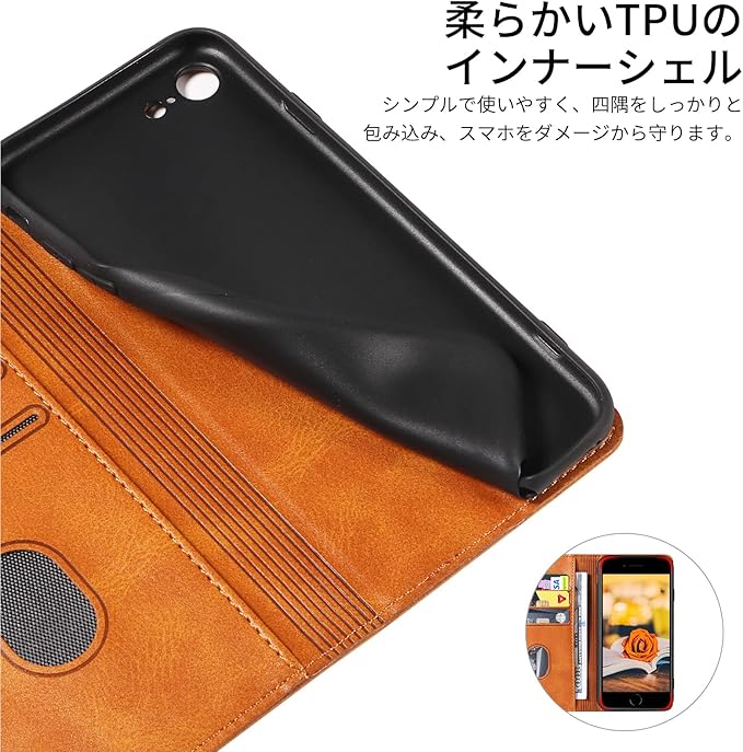 【カード収納】内側にはのカード入れとフリーポケットがつき、名刺や定期券の収納に優れているアイフォン ケースです。普段の生活に便利をもたらします。