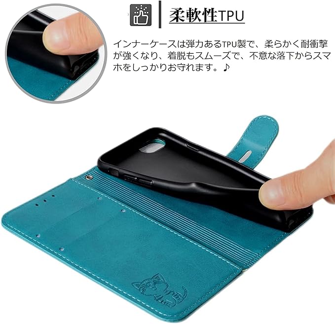 Arrows N F-51C ケース 手帳型 F-51C ケース手帳型かわいい 猫柄 ねこ おしゃれ ストラップホール付き Arrows N F-51C スマホケース 手帳型 Arrows N F-51Cカバー カード入れ収納 スタンド機能 F-51C 手帳型 マグネット式Arrows N F-51C ケース財布型 (Arrows N F-51C, ターコイズ) (Arrows N F-51C, ターコイズ)